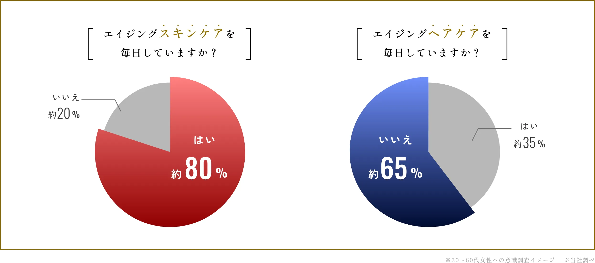 エイジングケアについて見ると、スキンケアは多くの人が日常的に取り入れている一方で、エイジングヘアケアを行っている人は、まだ限られています。髪も肌と同じように年齢を重ね、変化していく存在ですが、エイジングケアとして意識される機会は多くありません。「何か気になり始めてから考える」それが、髪のケアが後回しになりやすい理由のひとつです。