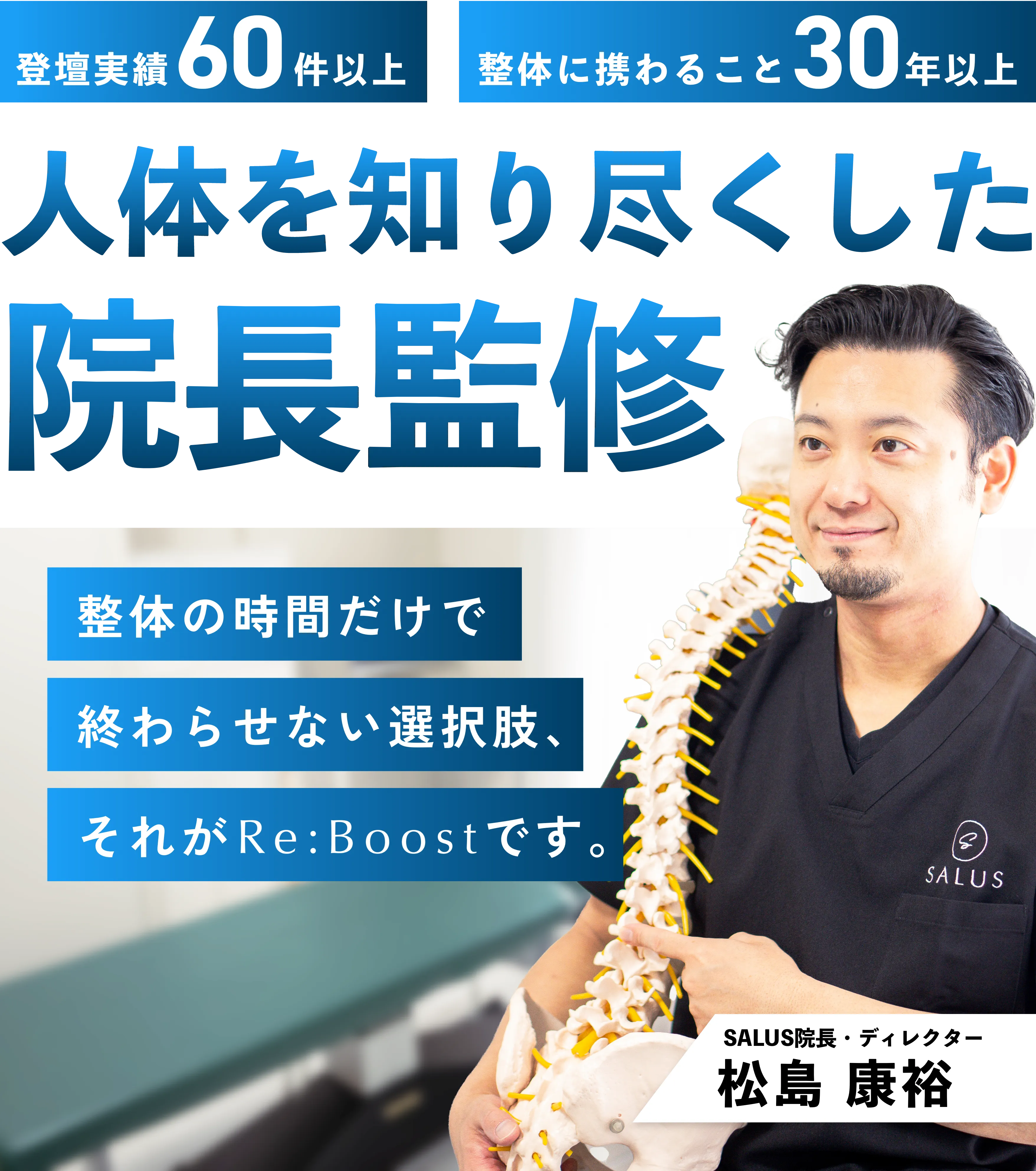 卒業後は、整形外科、接骨院、鍼灸マッサージ院、整体院など、医療・治療の現場を幅広く経験。症状や背景の異なる多くの患者と向き合いながら、臨床経験と知見を積み重ねてきました。